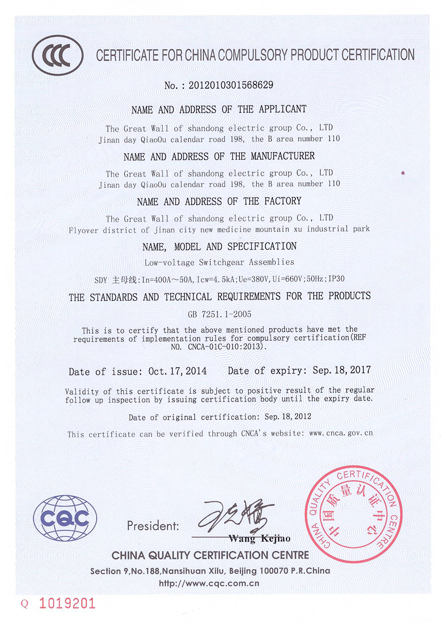 - 熱烈慶祝“長城電器集團(tuán)山東有限公司”榮獲“ISO9001質(zhì)量管理體系證書[2017-01-04]