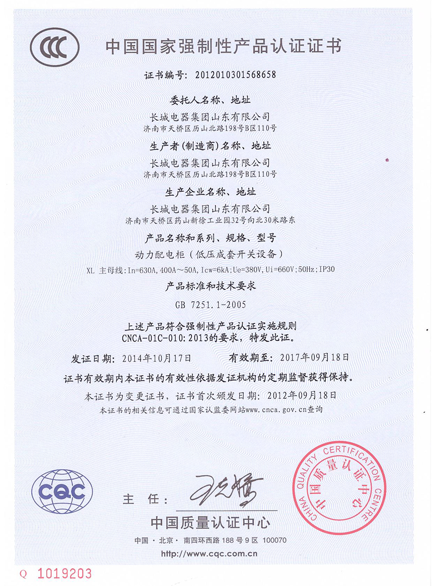 • 熱烈慶?!伴L城電器集團(tuán)山東有限公司”榮獲“ISO9001質(zhì)量管理體系證書[2017-01-04]