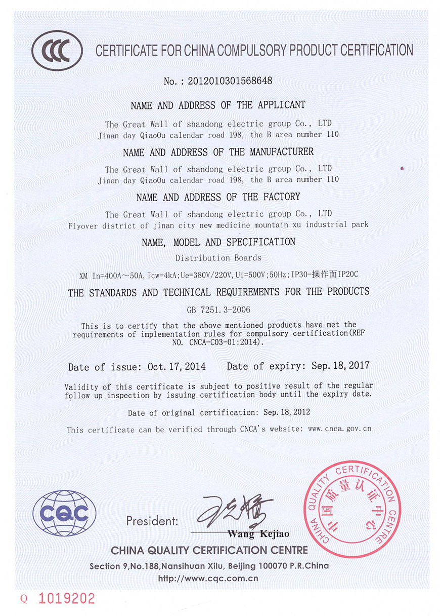 • 熱烈慶?!伴L城電器集團(tuán)山東有限公司”榮獲“ISO9001質(zhì)量管理體系證書[2017-01-04]